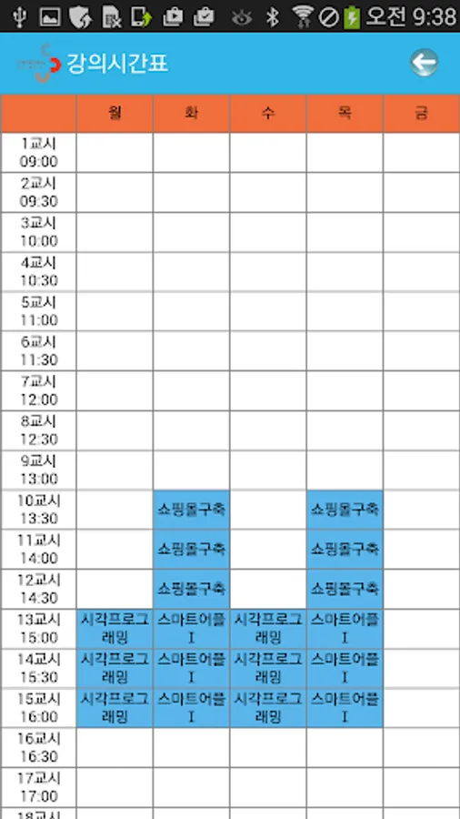 - 학사정보 : 수업시간표, 수업과목, 출결관리