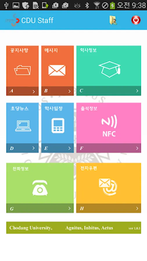 초당대학교 교직원용 모바일 앱 CDU Smart Campus 는 다음의 주요기능을 가지고있습니다.