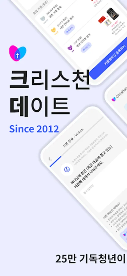 Meet your mate among 100,000 members of Christian Date, which is operated with the most stringent screening and member management policies in Korea, such as real name authentication and member history review.