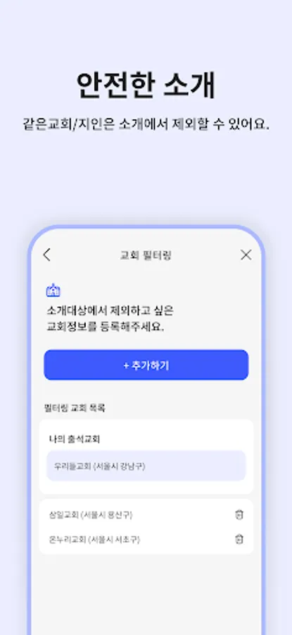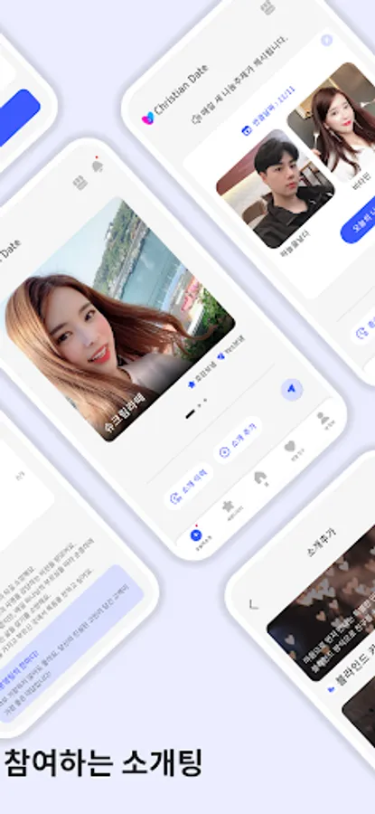 You can talk naturally during meetings with friends who go to church. In particular, it is best if you tell your friends or church brothers and sisters who want to go on a blind date with someone who goes to church, or install the app on your smartphone. In addition, you can inform your friends via KakaoTalk from the 'More' ⇒ 'Invite Friends' menu, so please spread the word to your friends who need to be introduced. :)