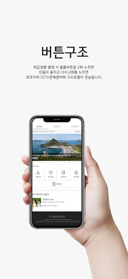 Button structure: In case of an emergency, if you press the volume button twice and after 1 second, press again 3 times, a rescue request is transmitted to the guardian and the CCTV control center.