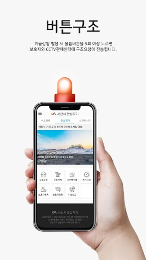 In an emergency, if you press the volume button more than 5 times, a rescue request signal is transmitted to the guardian and the control center, and the police cooperate to carry out rescue activities.