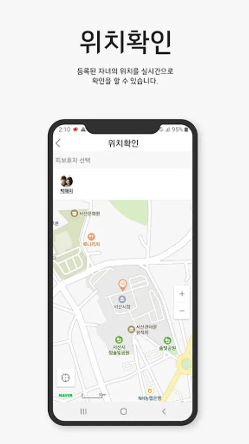Various functions that can be used for the safety of family members are also provided, such as real-time location search between families, safe return home, and safe area management.