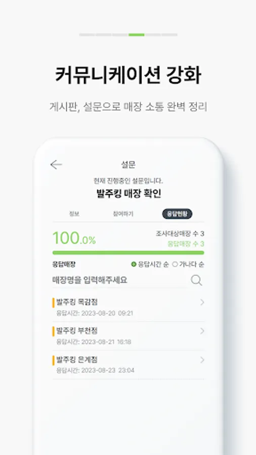 You can conveniently communicate with affiliated store owners through bulletin boards and surveys.