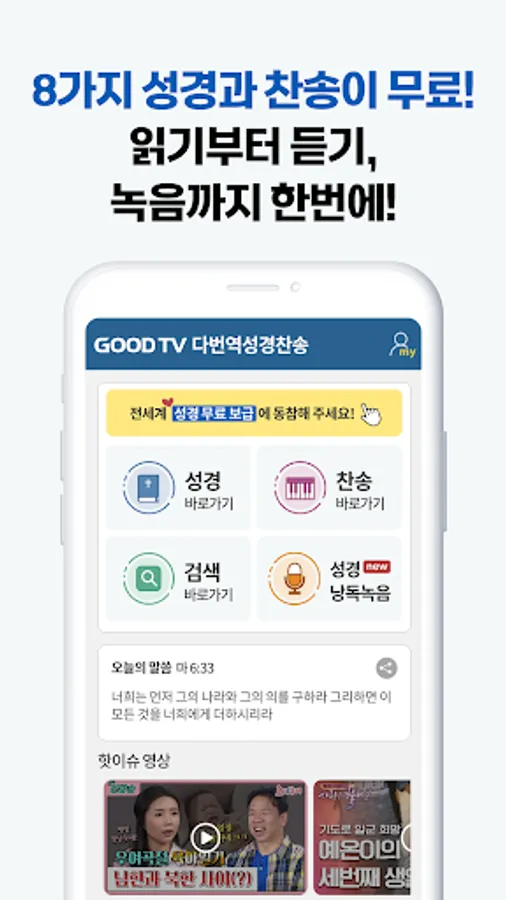 Best Free Bible App!! Bible application provided by GOODTV Christian Gospel Broadcasting - multiple translation Bible hymns!!