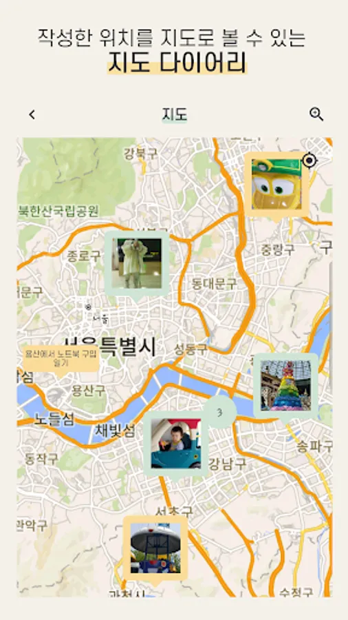 ✔️일기, 순간메모 작성 시 위치를 등록할 수 있습니다.