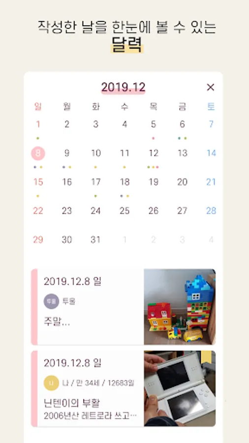 ✔️처음 다이어리에 소중한 기억을 기록하세요.