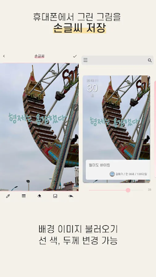 7. 다이어리 손글씨 작성 시 배경화면을 사진으로 설정할 수 있습니다.