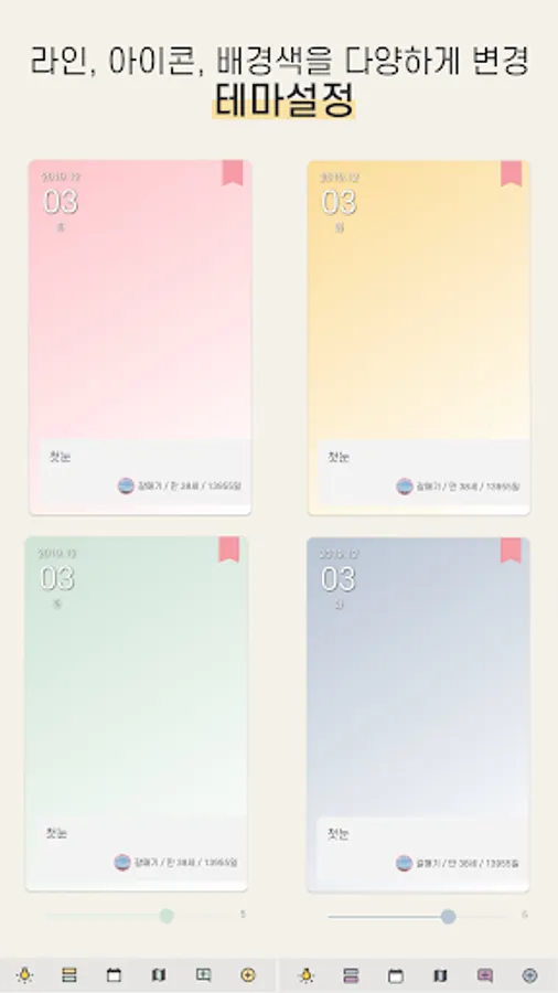 ✔️처음 다이어리는 다양한 테마를 제공합니다.