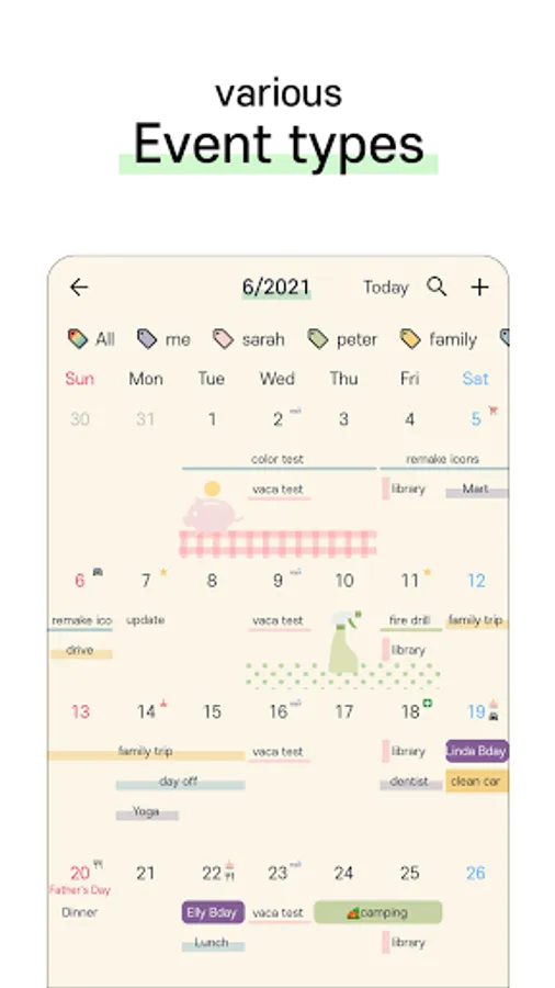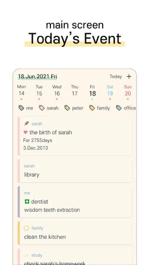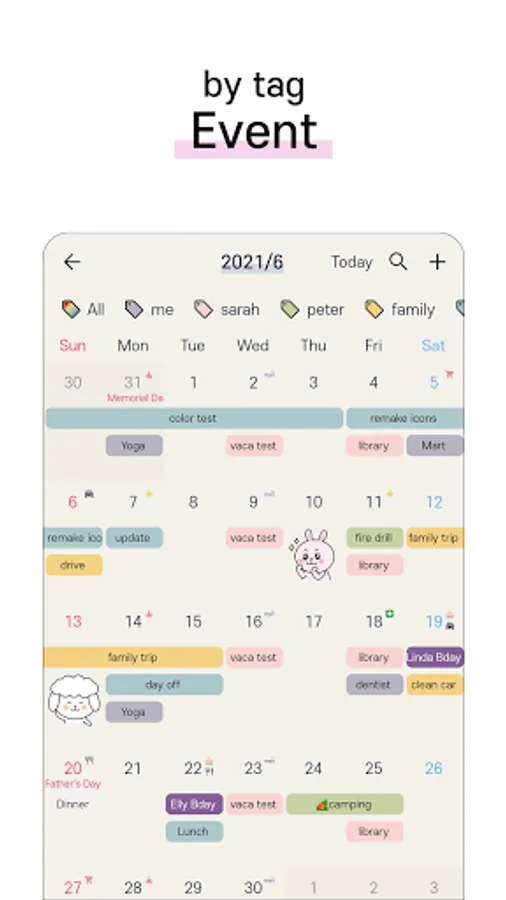 2. Tags are differentiated by color, making it easier to see your schedule on the calendar.