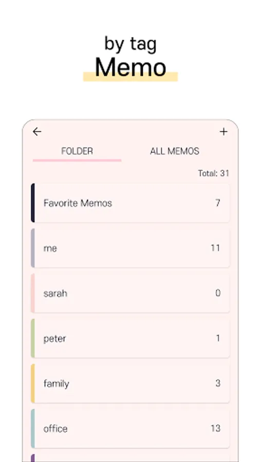 ✔️ Created memos are saved separately for each tag in their respective folders.
