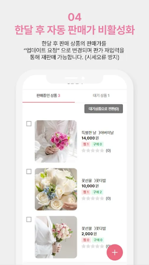 : Due to the nature of flowers, prices fluctuate greatly depending on the season. In order to keep the price trend, the price will be automatically switched to “inactive” when “1 month after upload”. If you check the selling price again and switch to “Sell”, you can simply resell.
