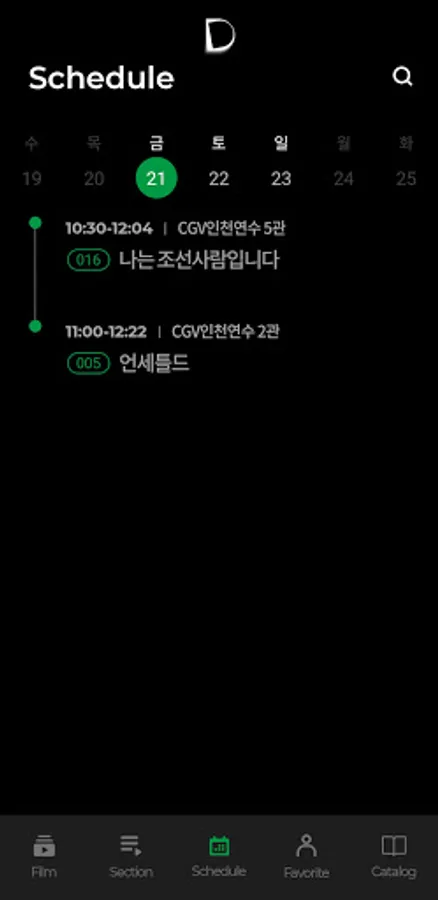 The official mobile app of the Diaspora Film Festival, which will be held at CGV Incheon Yeonsu from May 21 to 23.