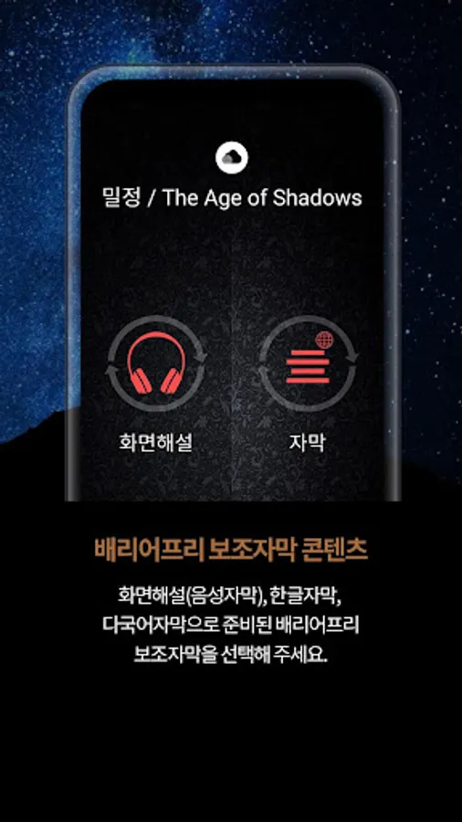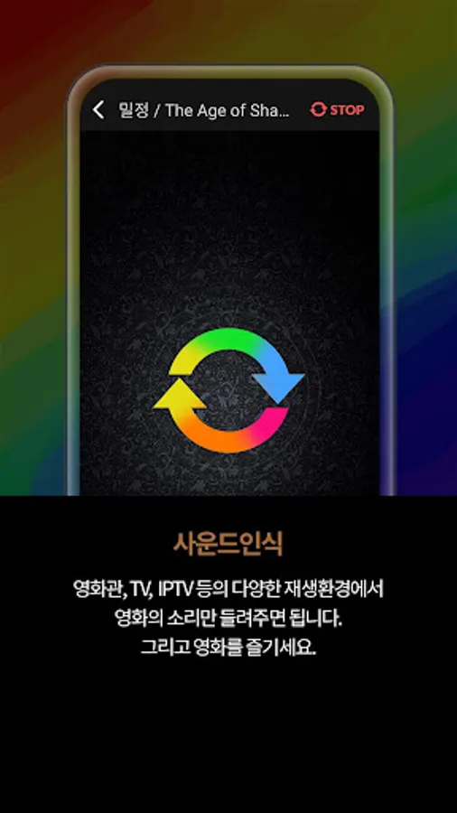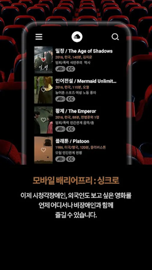 SYNCHro is a barrier-free movie subtitle mobile platform that recognizes movie sound in various movie viewing environments such as movie theater, TV, CATV, VOD, IPTV, and provides auxiliary subtitles for audiovisual and multilingual subtitles for foreigners.