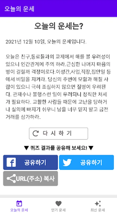 You can easily find out interesting fortunes such as four weeks, today's fortunes, secrets of land management, and various tarot taxes.