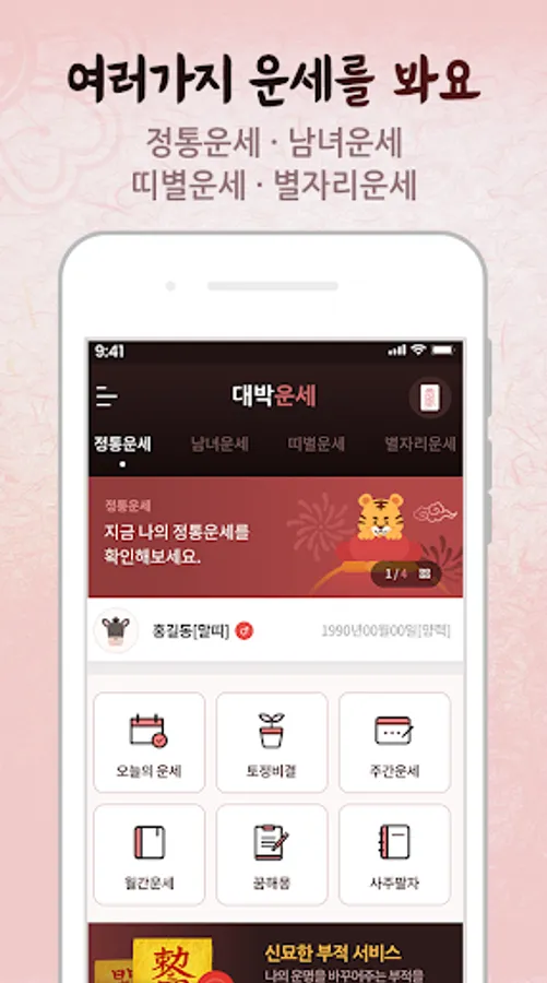 - With simple information, we will inform you of your four-year fortune, first-year fortune, middle-aged fortune, last year’s fortune, love fortune, and wealth fortune, and we will tell you what to do in the future and how to do it.