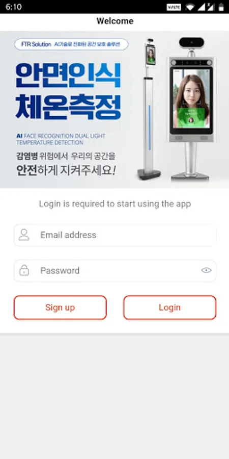This app is a free app for users of FTR Solution, a facial recognition body temperature measuring device. If you are not an FTR Solution user, there is no reason to install or use this app. This app has a function to receive a notification when a person with fever is measured by the FTR Solution device, a function to view the measured body temperature record by period, and a function to send the measurement record by email.