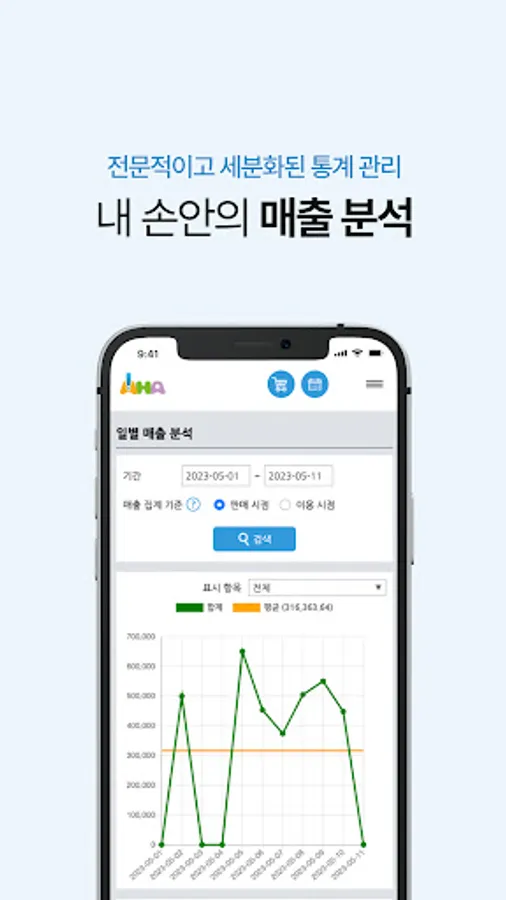 You can find the information you want immediately with detailed settings such as period, payment method, sale/refund, etc.