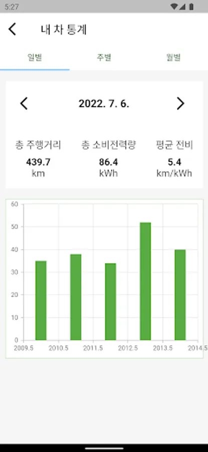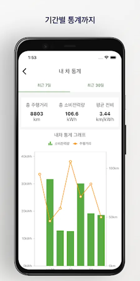 - You can check the graph by dividing your vehicle mileage, total power consumption, and average fuel efficiency by day, week, month, and month.