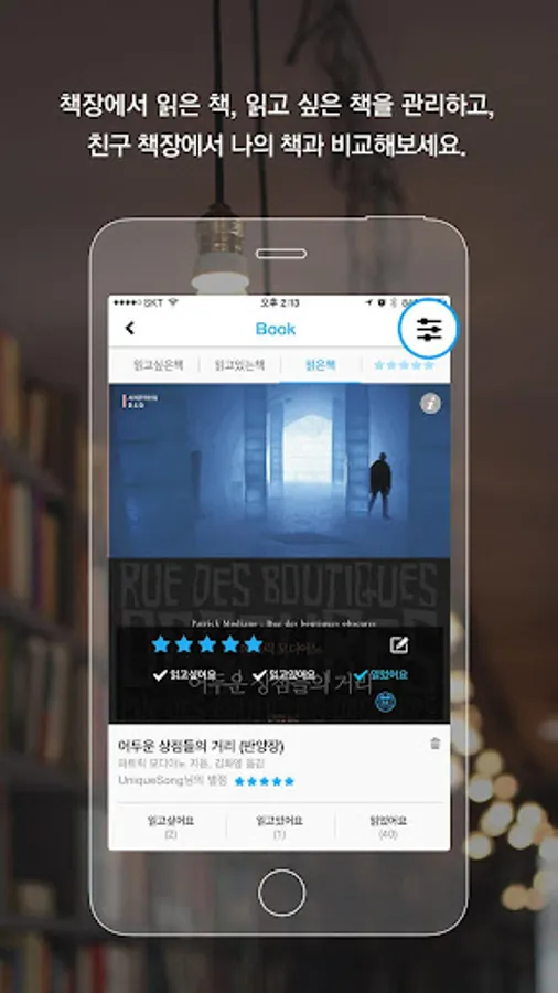 - You can set and manage the reading period of the books you have read, and you can compare the books your friends have read with the books you have read.