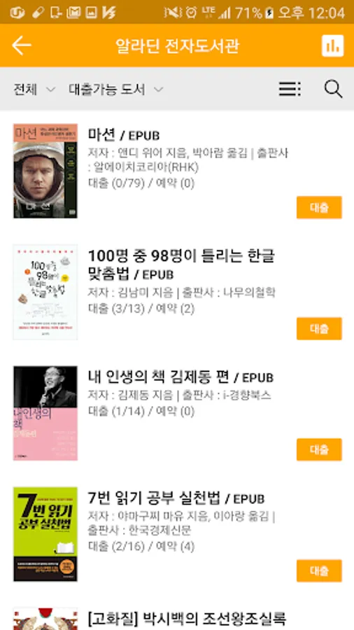 -If you are a digital library user affiliated with Aladdin, you can read the e-book through the loan / return / reservation / extension function. For loan / return / reservation / extension, you must have Wi-Fi or 4G internet connection.