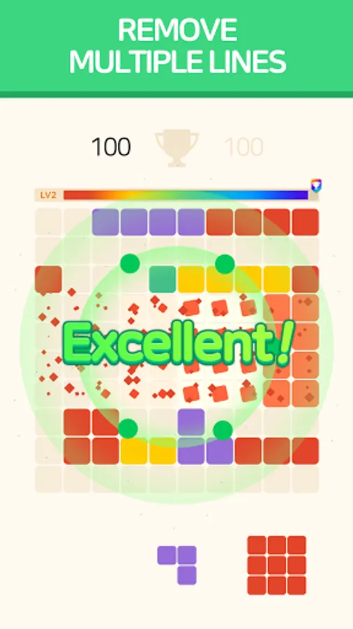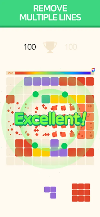 When a row or column is full, the blocks are removed to score points.