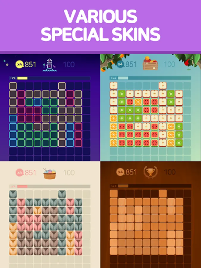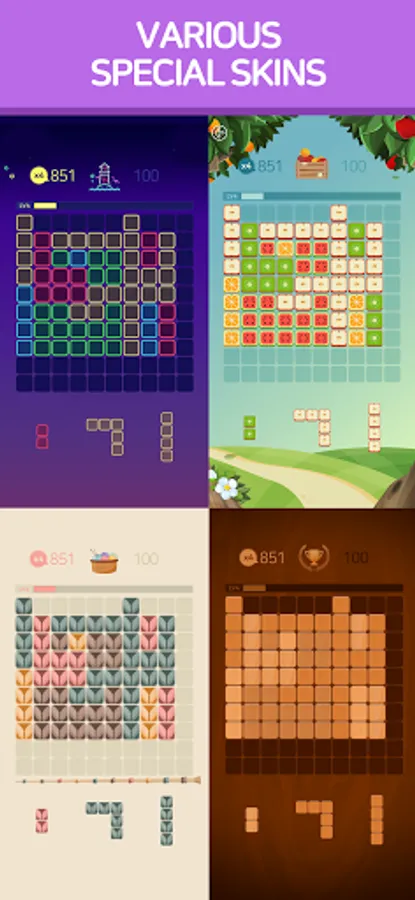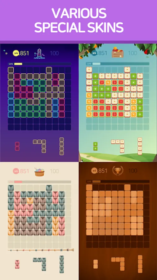 1010 Block puzzle Is a puzzle game that takes advantage of various blocks and places them in a limited space.