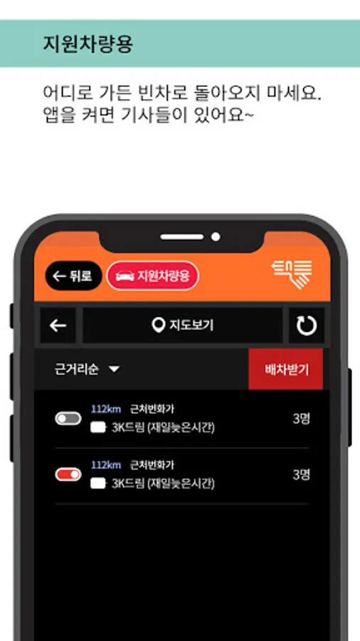 -When taxi drivers move to their area after driving outside the city, you can check the request for support from the deputy drivers who want to move on a list or map, perform support in the same direction, and pay the contracted fee when applying, so you can move reasonably. .
