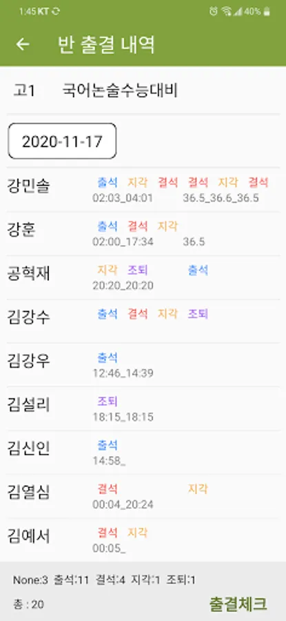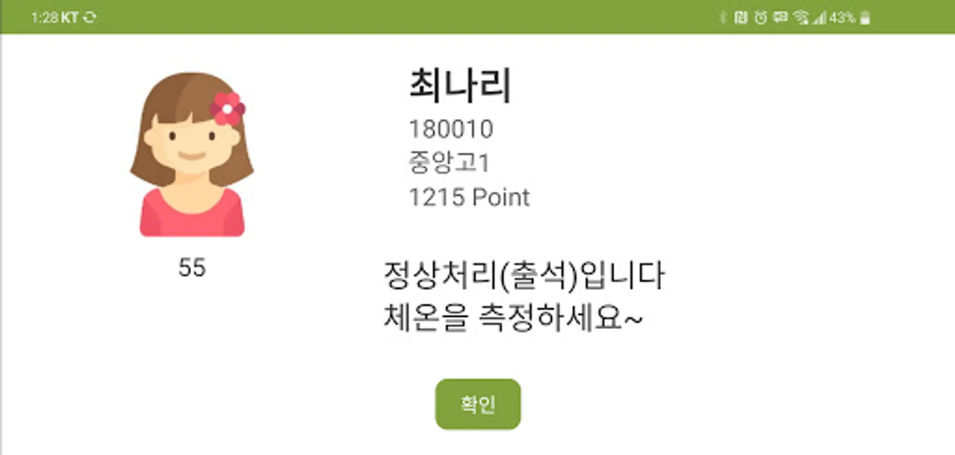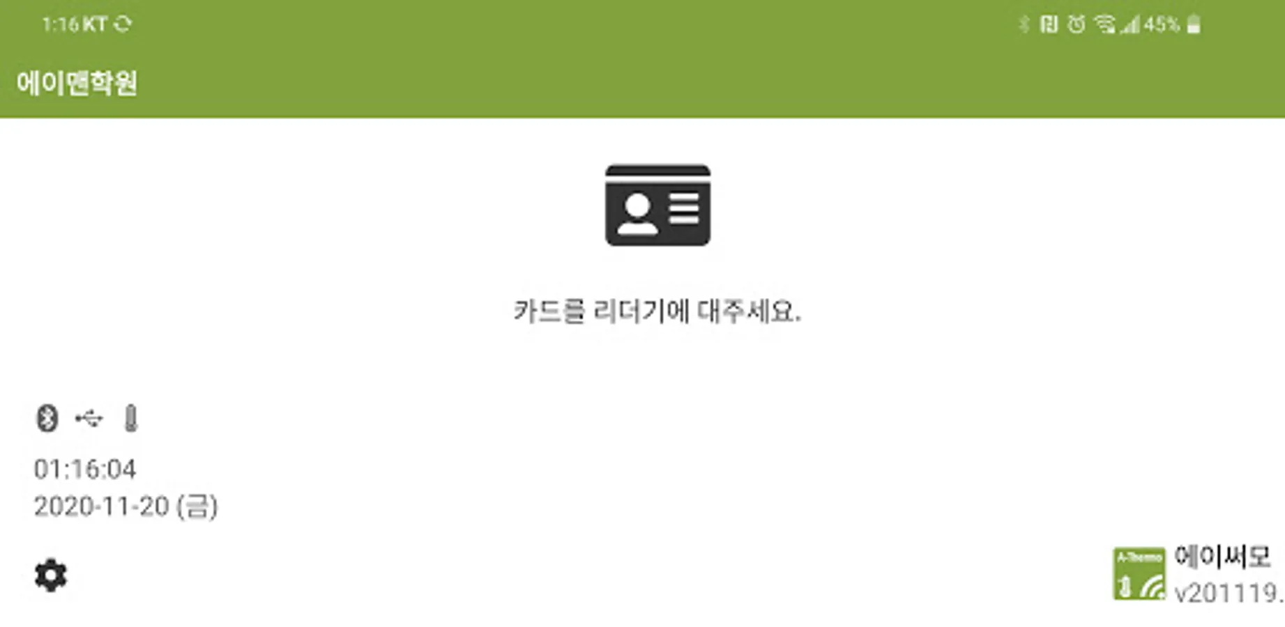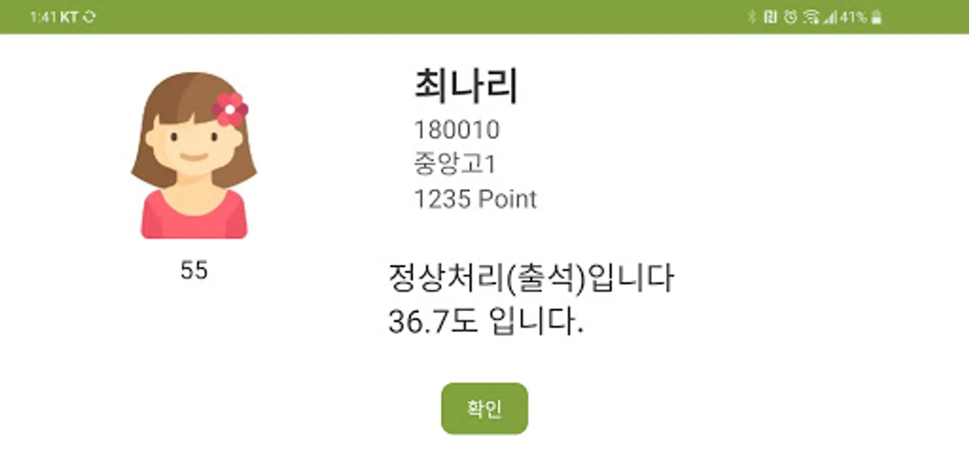 1. An app that allows you to check attendance and measure body temperature at the same time, and the mobile device, Bluetooth-type RFID attendance reader, and thermometer are linked.