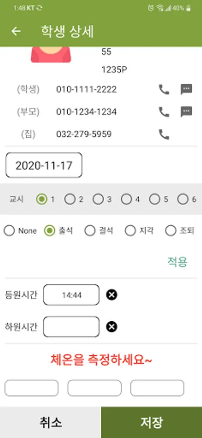 4. It is also possible to manually check attendance and measure body temperature with a Bluetooth thermometer in the classroom without an RFID card using a smartphone for faculty members.