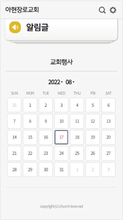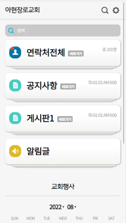 * 100% Linked App: You can check the contents of the website, such as posts, sermon videos, and photos, through the app in real time by linking 100% with the app.