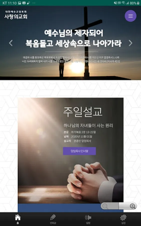 * 100% linked app: You can check the content registered on the homepage, posts, sermons, photos, etc. through the app in real time by linking 100% with the app.