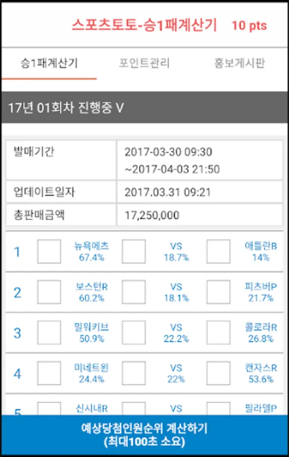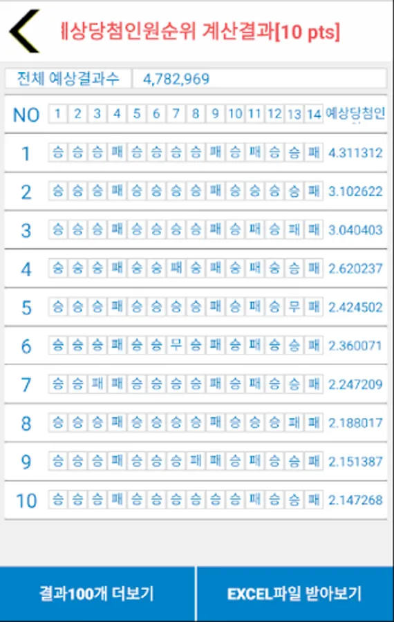 Choose your own game, press the calculate button, an app that provides an expected winning staff positions.