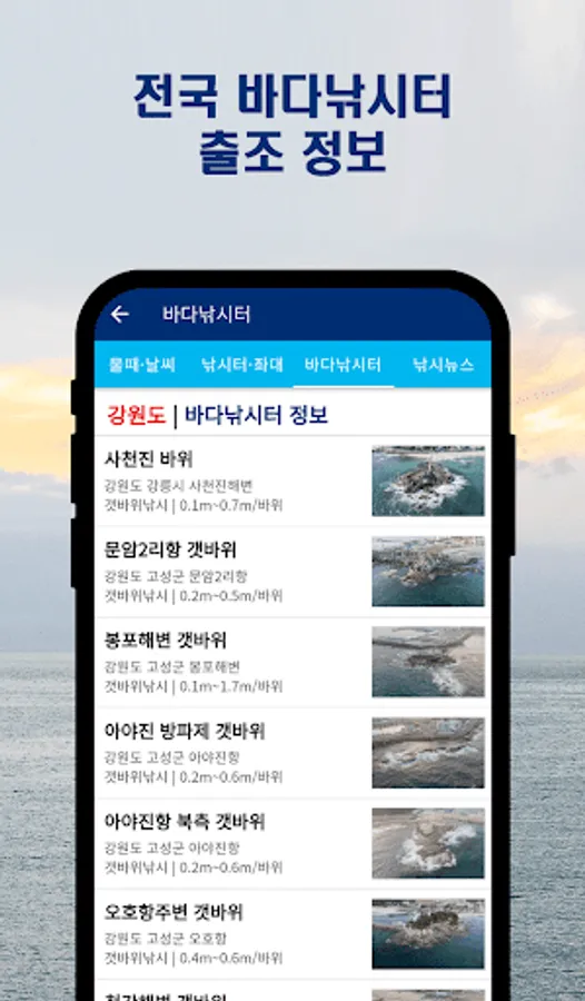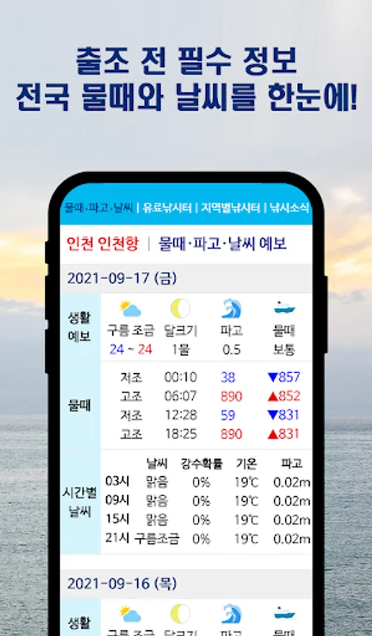Provides weather, sea splitting, sea water temperature, sea fishing points, etc.