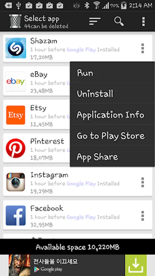 In addition to the app deletion function, it also provides convenient functions such as checking app information and checking available storage space.