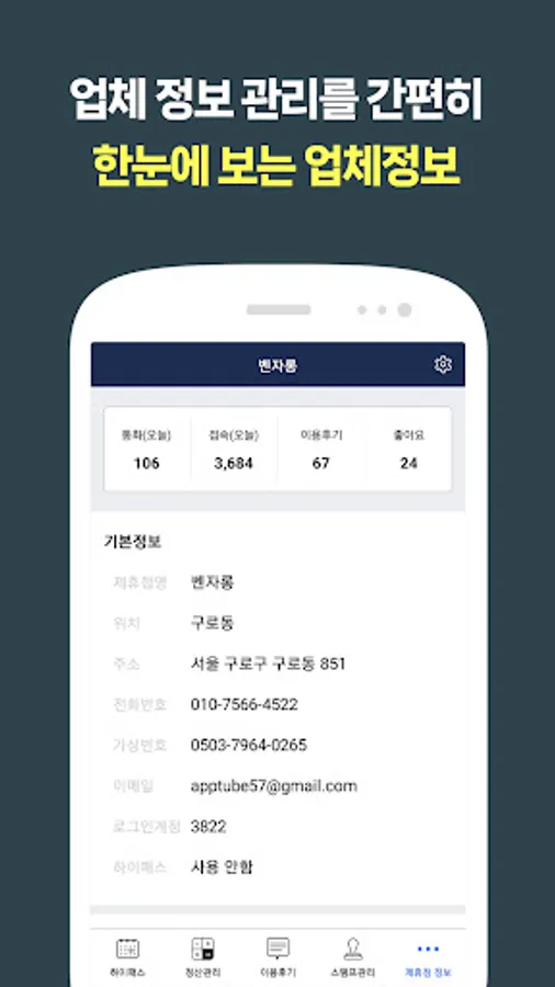 The Haitai boss app is an app that allows you to conveniently and efficiently manage advertisements, company management, and reservation management. Manage your business more efficiently through the Haitai boss app.