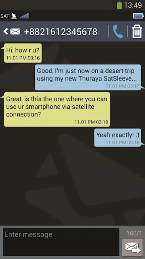 Download the SatSleeve Hotspot App for free and get seamless connectivity via satellite when outside of terrestrial networks. Enjoy calls, SMSs, emails, instant messaging, social media and smartphone information apps in satellite mode across Thuraya’s satellite network covering Europe, Africa, Asia and Australia.