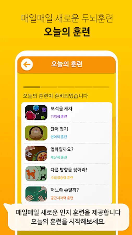 Today's training content is based on the user's data, five kinds of training each day to compensate for the cognitive deficiency.