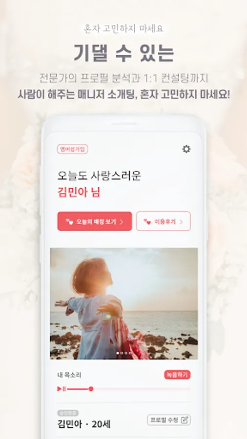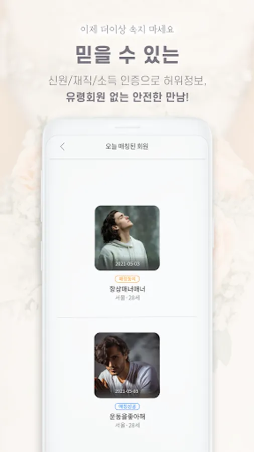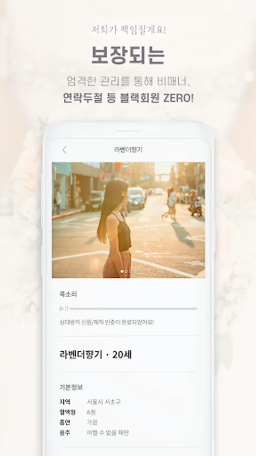 ✔ 1:1 private blind date between members carefully selected through managers in advance without worrying about misuse of personal information that my profile is floating around!