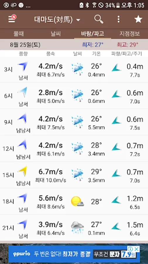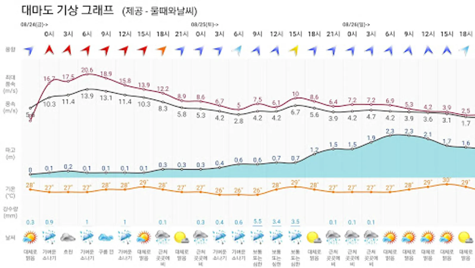 ● For the first time in Korea, it provides accurate wind speed/wind direction at 3-hour intervals, and forecasts up to 14 days, so you can get a lot of help from sea leisure activities.
