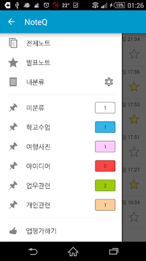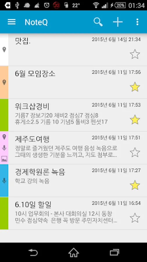 step7. 글 목록에서 중요한 노트는 별표시를 클릭하여 별표 노트로 리스팅할수 있습니다.