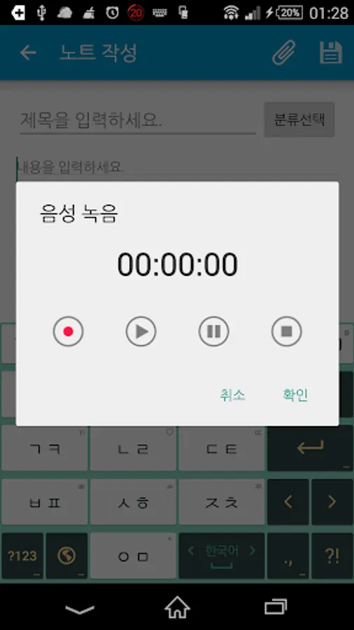 5. 레코딩 기능을 이용하여 음성 녹음을 첨부할 수 있습니다.