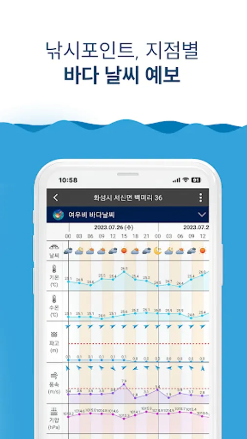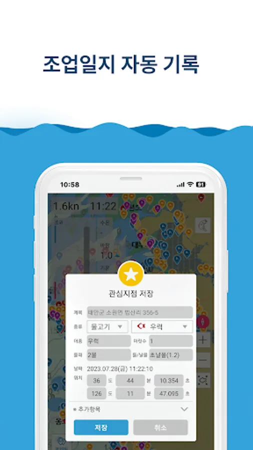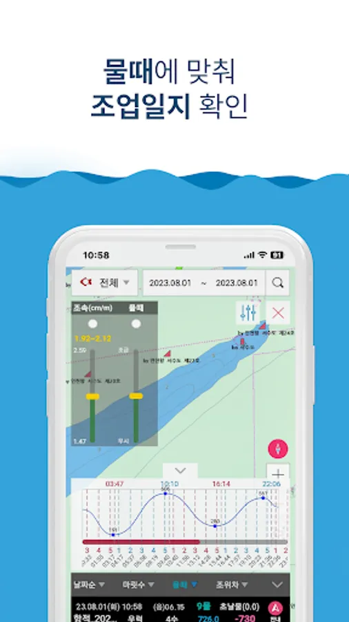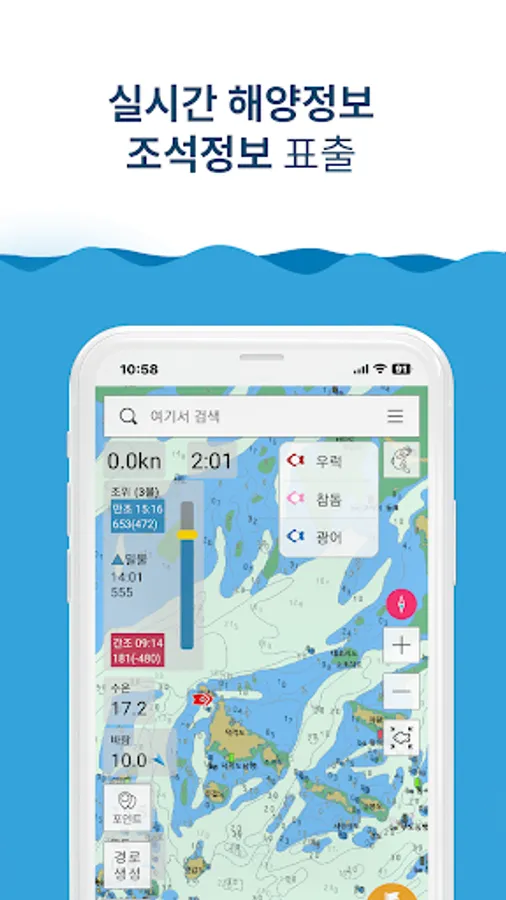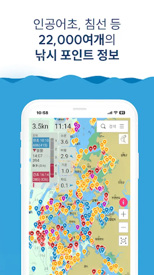 It provides information on more than 20,000 sea fishing points such as artificial reefs, chimneys, reefs, and natural reefs, as well as sea weather and tide information such as wind direction and speed for each fishing point.