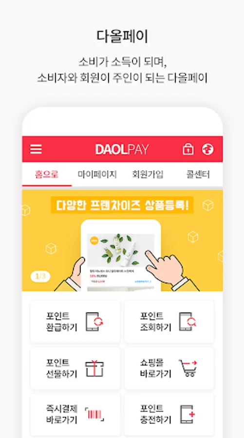 Purchase a variety of products by registering more than 100 franchise products (shopping merchants)