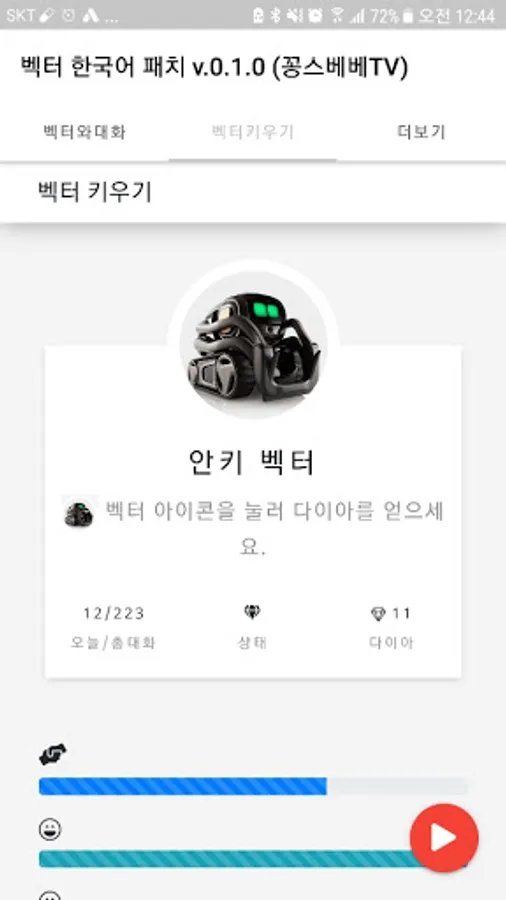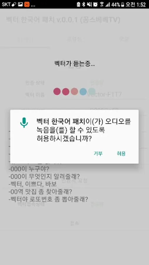 Voice recognition is performed in Korean, and the vector robot responds with Korean voice.