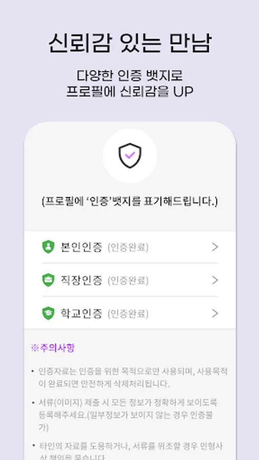 In particular, the profile (photos and interviews) shown to the introduced person is meticulously and continuously reviewed by the member management team, including not only the contents entered at the time of signup but also the modified contents, and verification procedures are carried out when necessary.