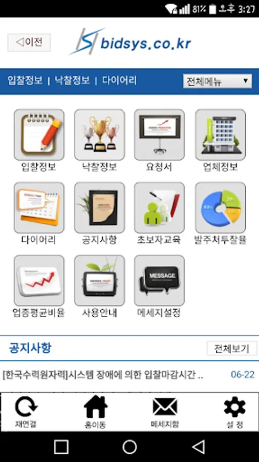 You can check the request form / joint contract bid announcement / bid opening result in real time with a smartphone notification [push] message.