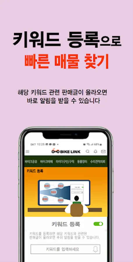 If you register a keyword, you will be notified by push notification when new listings are posted.