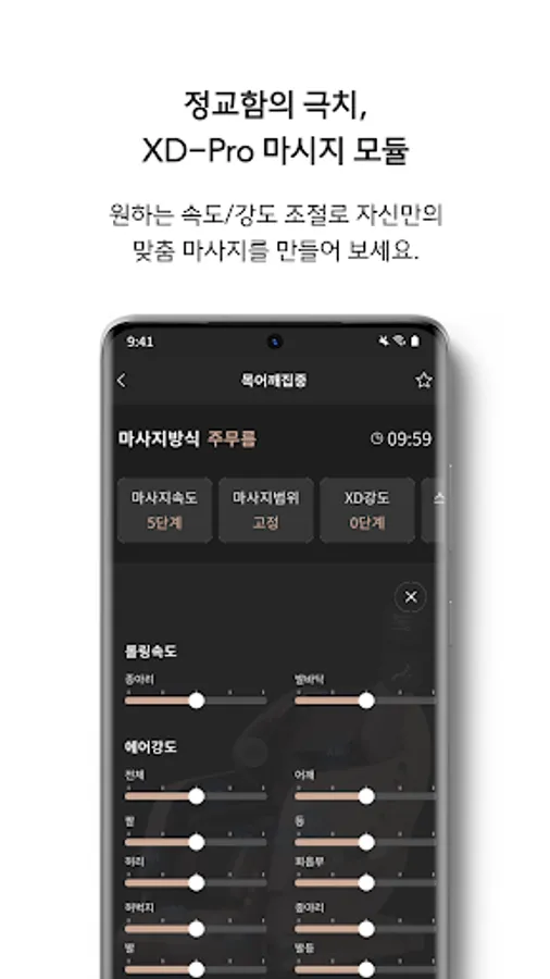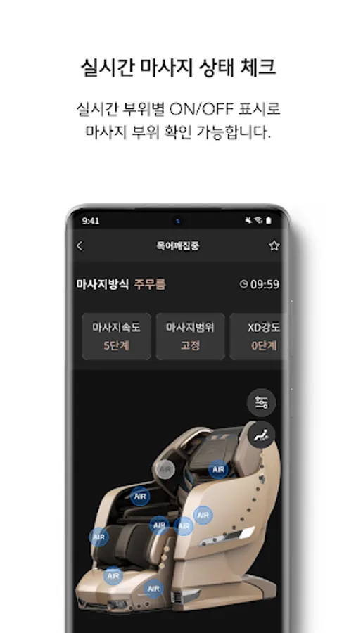 Change the massage chair's status, such as massage intensity and location, conveniently on mobile