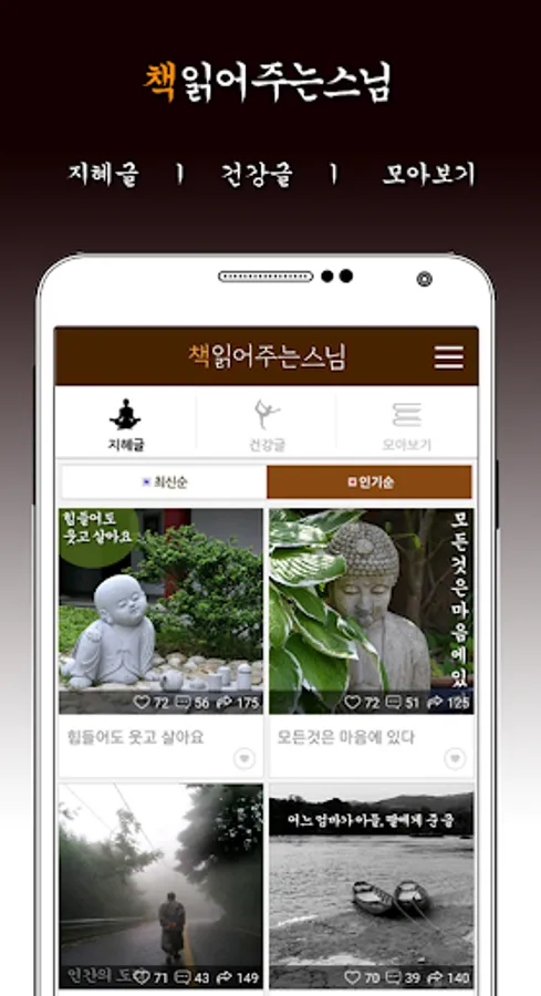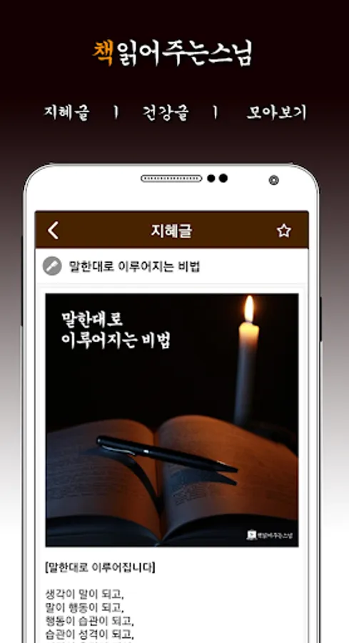 The book-reading monk app serves as a small lamp to increase the happiness index by 1% every day through sayings and good words other than the wisdom of life and human relationships.